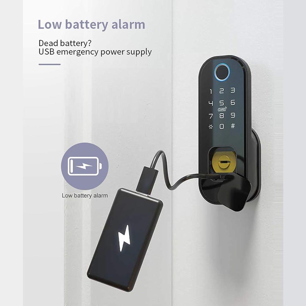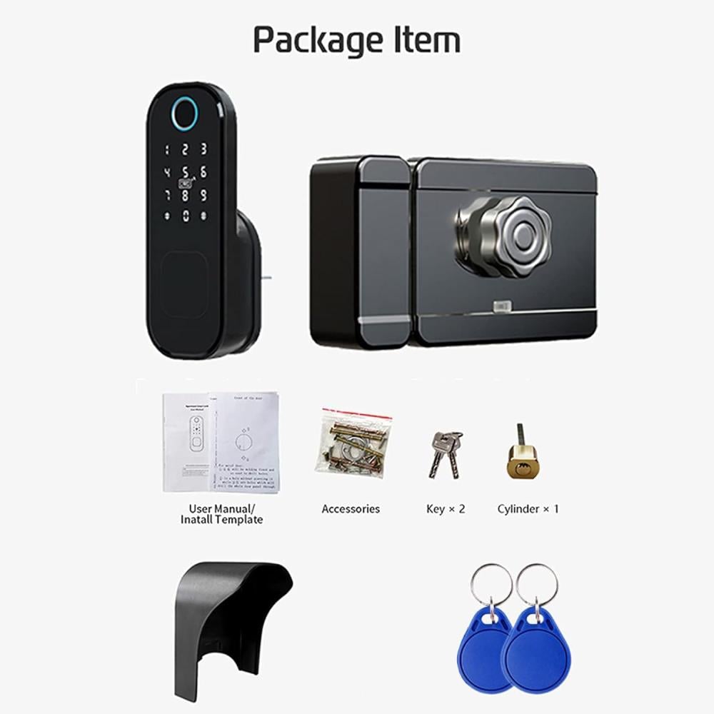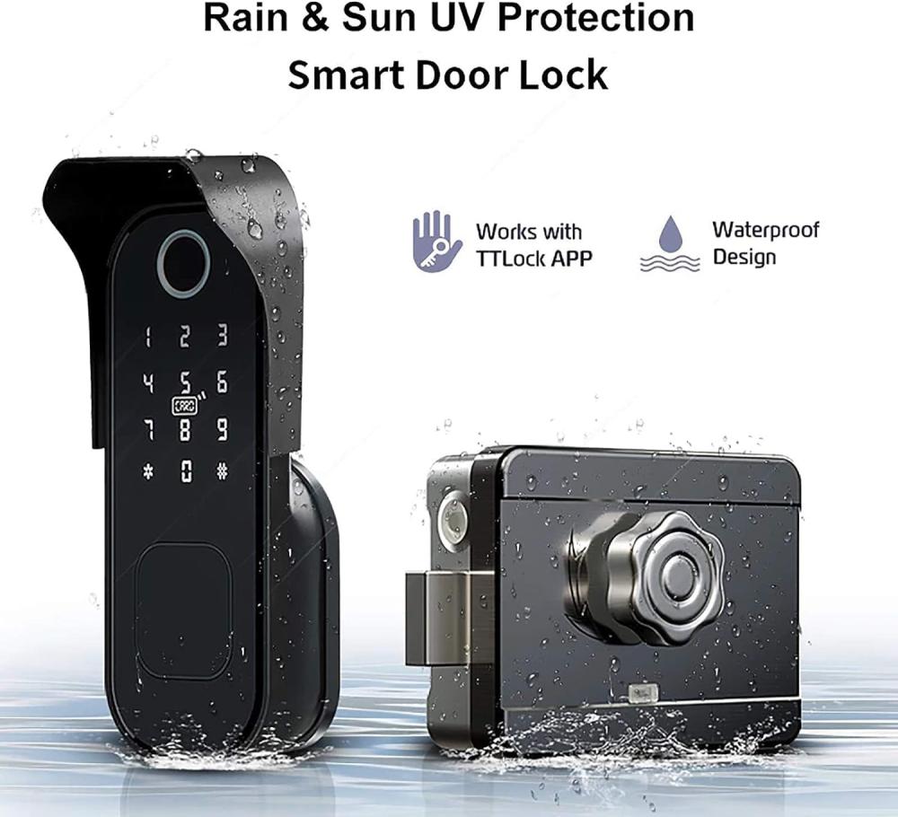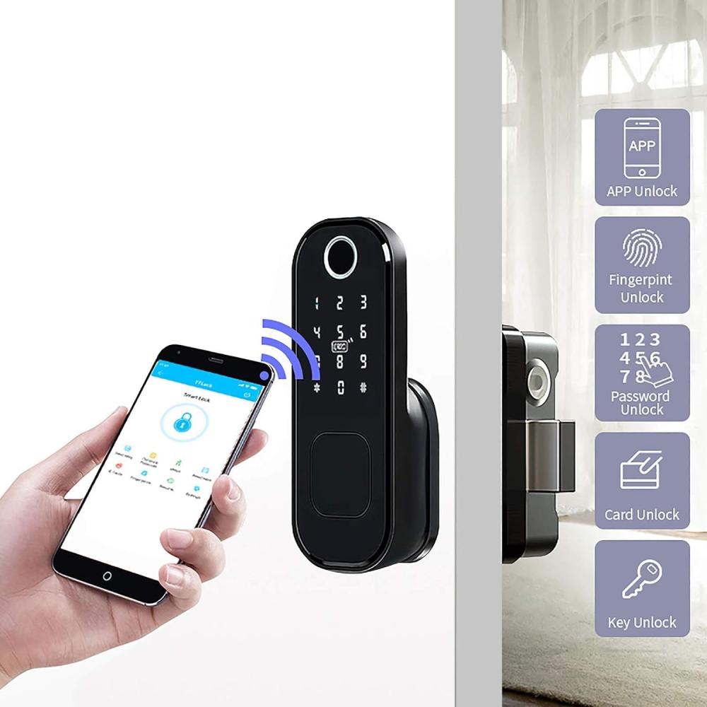 قفل ذكي خارجي يعمل ببصمة الاصبع و الكرت و الرقم السري مع إمكانية التحكم من الجوال
